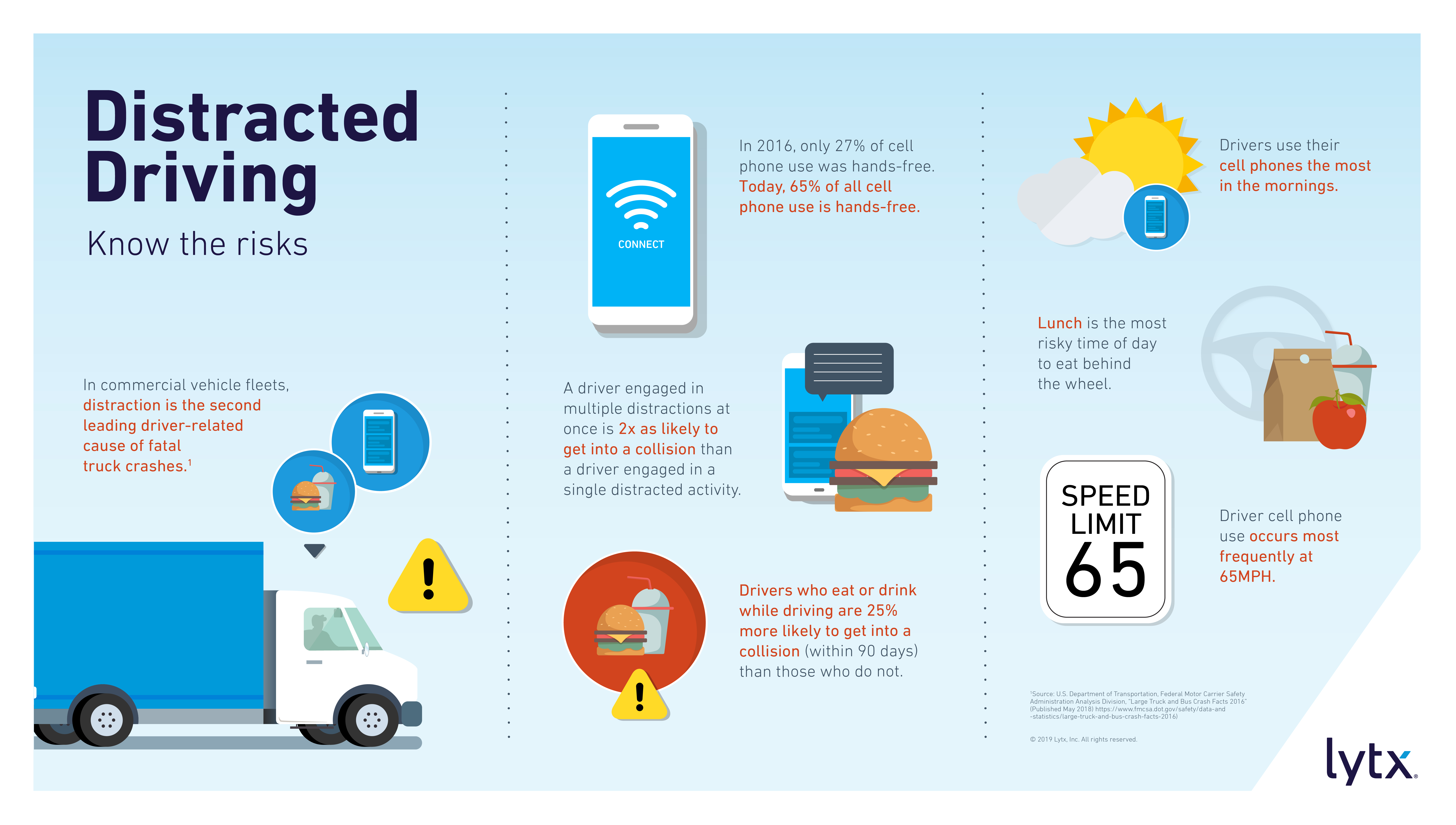 Distracted driving is a serious risk for everyone on the road. Take a look at some stats on distracted driving and cell phone use, taken from recent Lytx data.